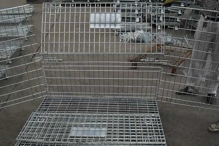 倉儲籠的主要原材料是高線拉成的鋼絲,一般絲徑是5mm,6mm,6.4mm。網片焊接的網目間距一般為50×100,100×100,50×50。倉儲籠底部采用U型鋼焊接而成,U型鋼是冷軋帶鋼軋機軋制而成,底部四角采用沖壓件一次沖制而成。倉儲籠采用Q195高線作為原材料,經冷拔成型材。再通過碰焊形成半成品網片。在制作成網片后,可采用鍍鋅或噴塑進行表面處理(倉儲籠大多數(shù)采用鍍鋅處理),表面處理完畢后就可以進行組裝,即可制作成成品。